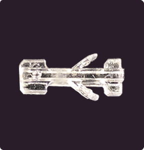 內(nèi)層夾材料采用醫(yī)用聚合物"聚對(duì)二氧環(huán)己酮"(PDO),與進(jìn)口單層V型可吸收夾材質(zhì)一致,